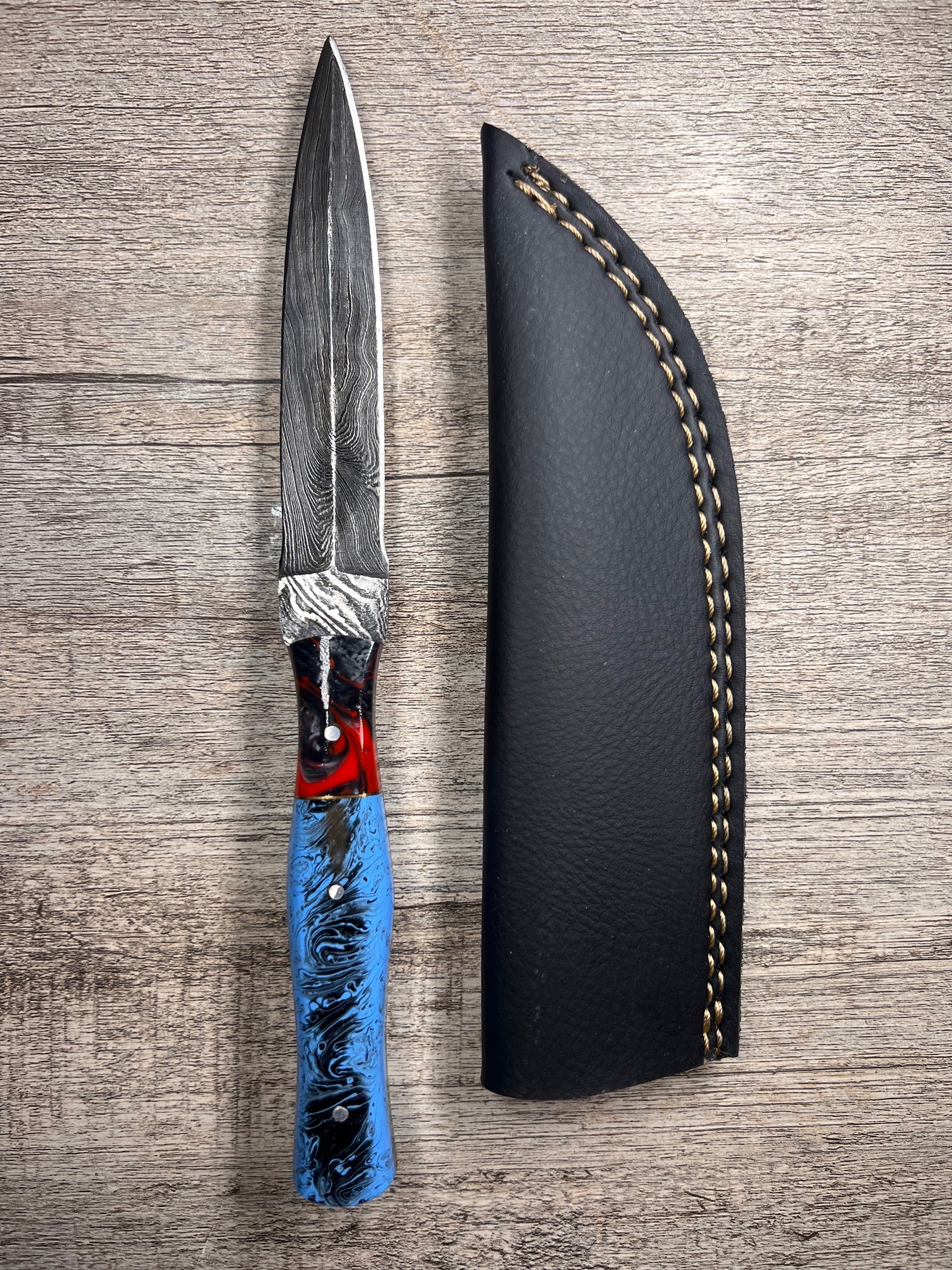 Damascus Steel Dagger With Multi-Colored Acrylic Handle
