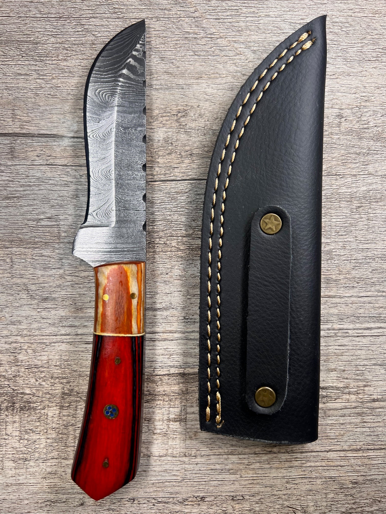 Damascus Steel Knife With Multi-Colored Wooden Handle